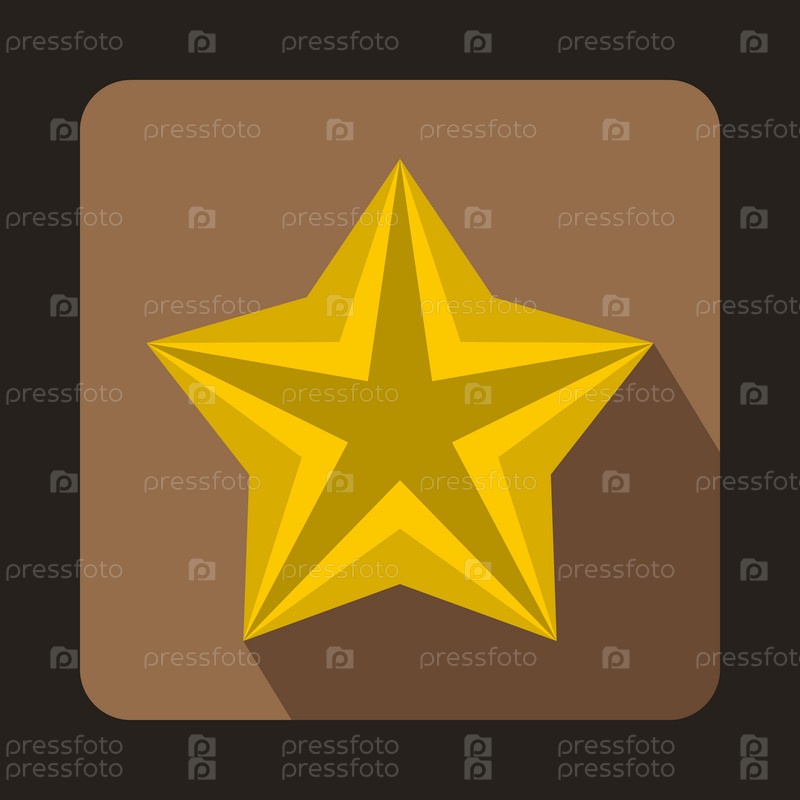Блестящая икона золотой звезды в плоском стиле на фоне кофе