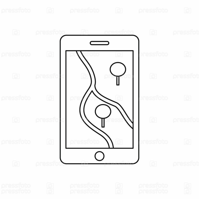 Смартфон с иконой навигатора GPS, стилем контуры