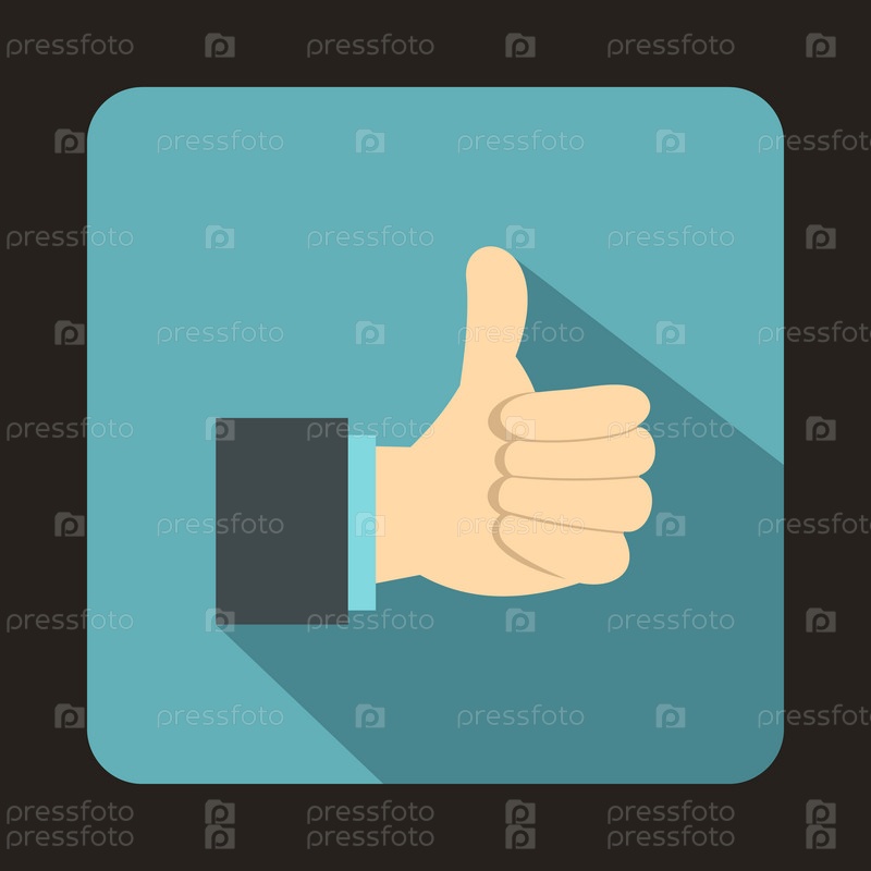 Икона жестов с поднятым пальцем в плоском стиле на синем фоне