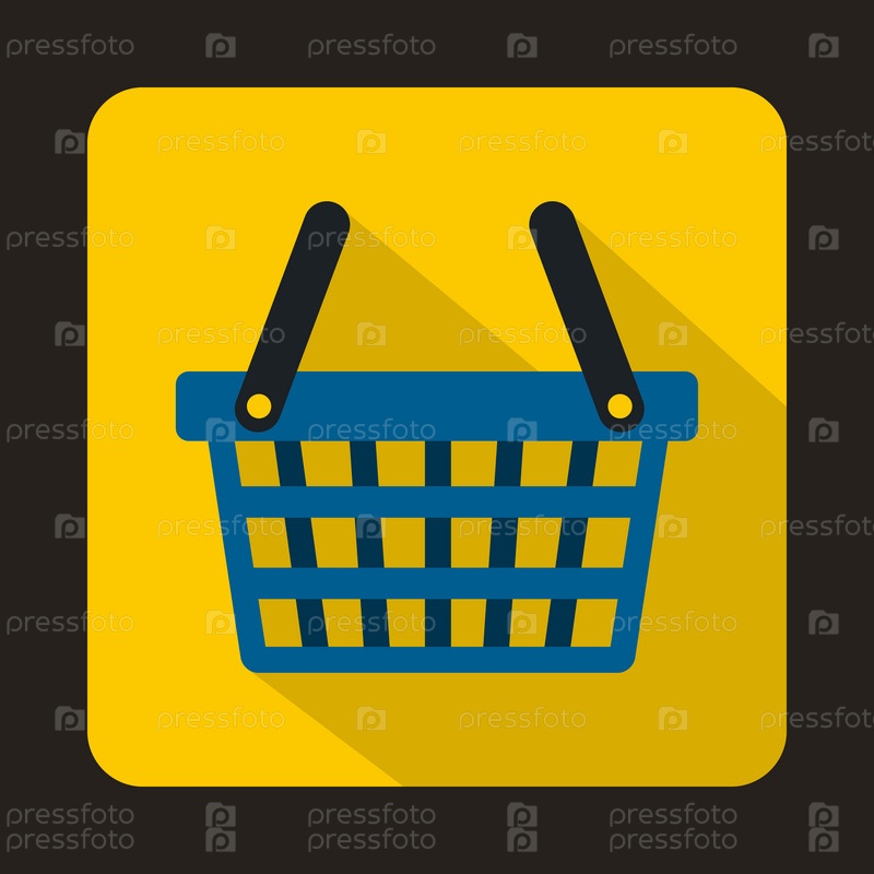 Синяя икона корзины покупок в плоском стиле на желтом фоне