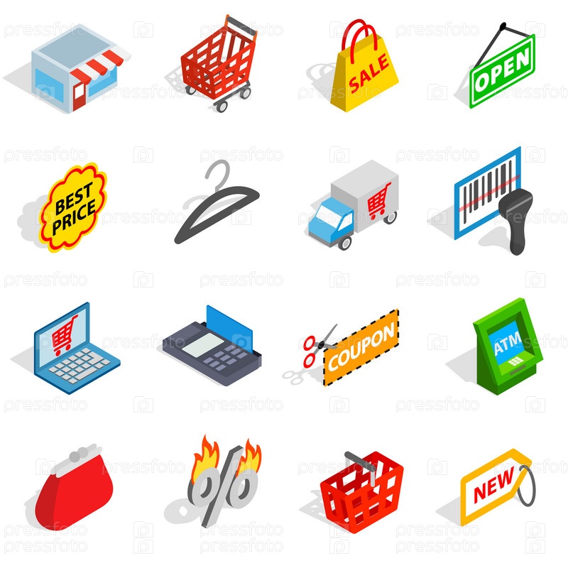 Набор икон покупок, изометрический 3D-стиль