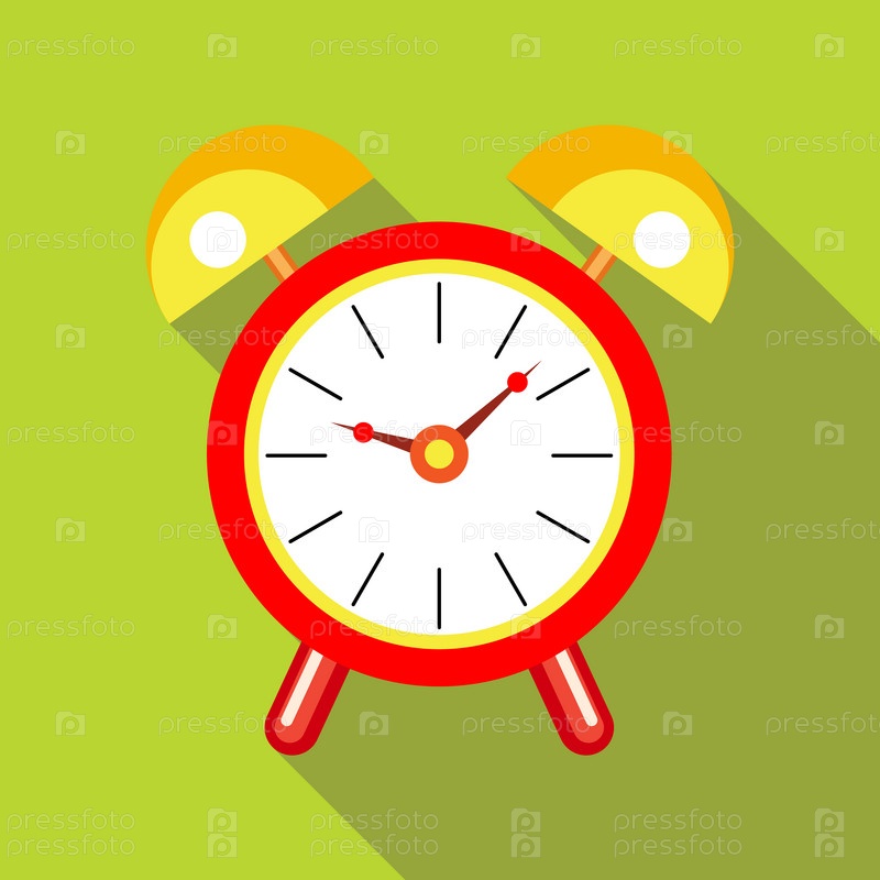 Икона красного будильника в плоском стиле на зеленом фоне