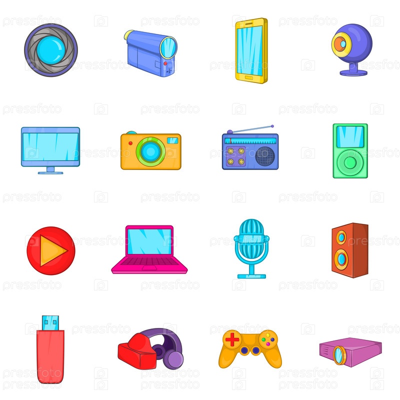 Мультимедийный набор икон, в стиле мультфильм