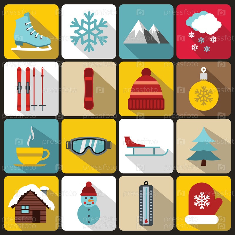 Набор зимних икон, плоский стиль