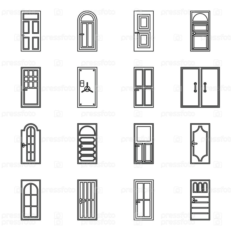 Набор икон двери, контурный стиль