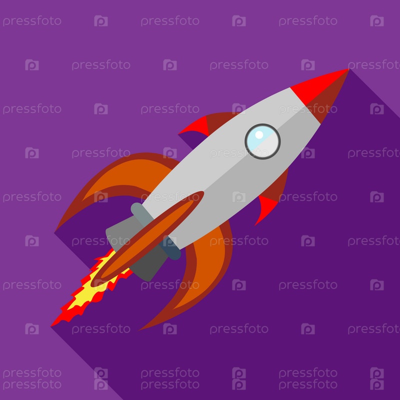 Ракета с иконой пламени в плоском стиле на фиолетовом фоне