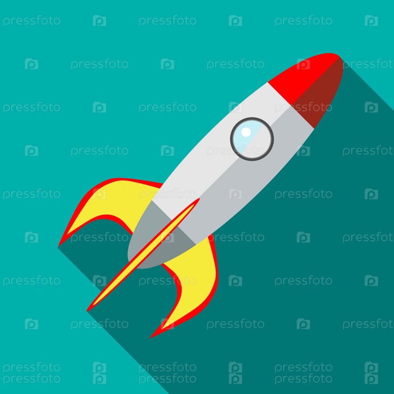 Икона космической ракеты в плоском стиле на бирюзовом фоне