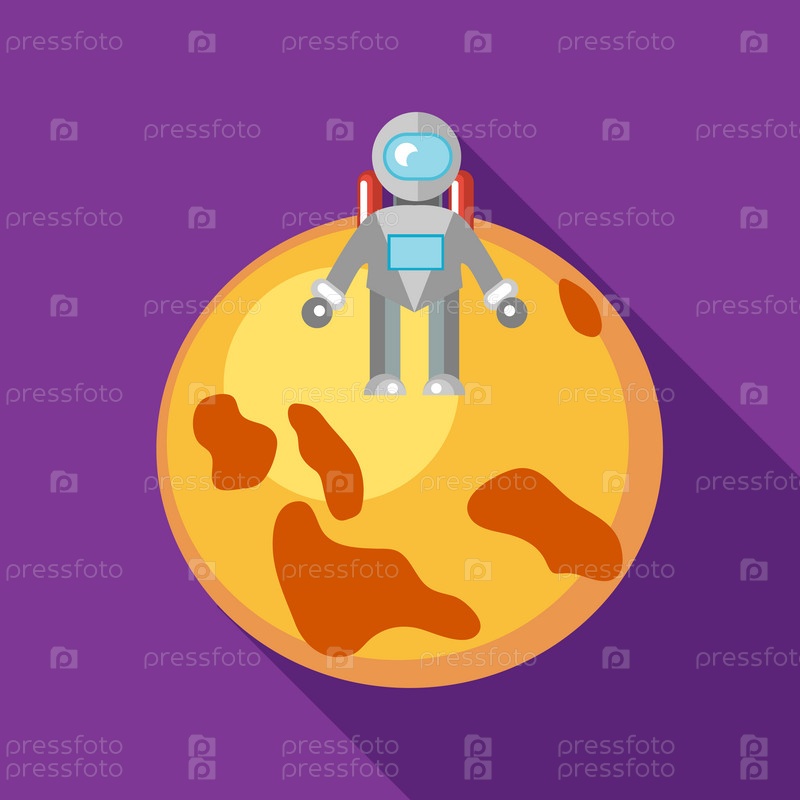 Икона астронавта на Луне в плоском стиле на фиолетовом фоне
