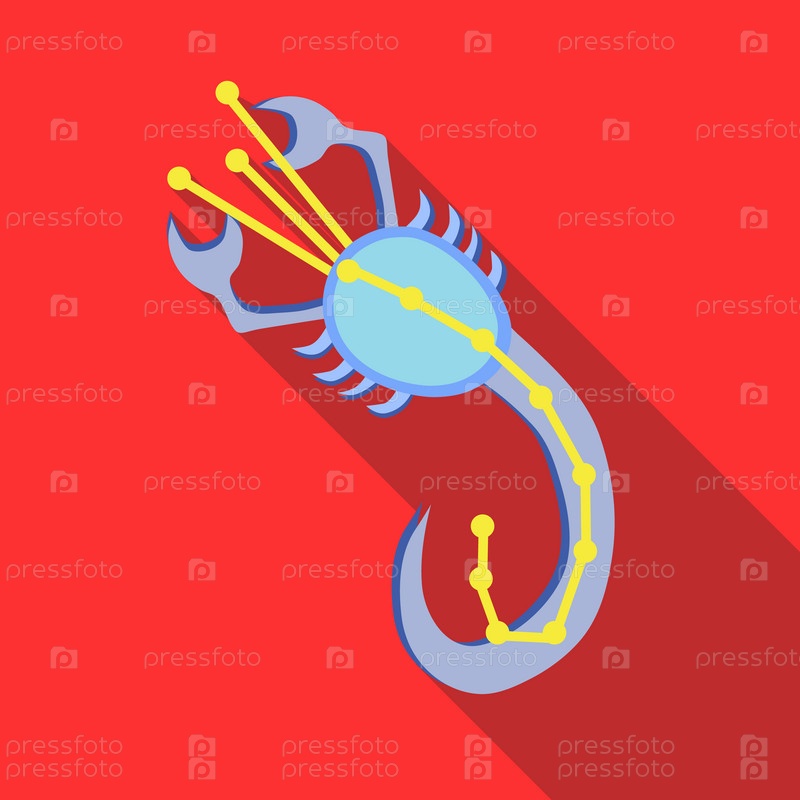 Икона созвездия Скорпиона в плоском стиле на красном фоне