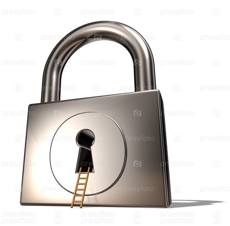 Замок и лестница на белом фоне. 3d Иллюстрация