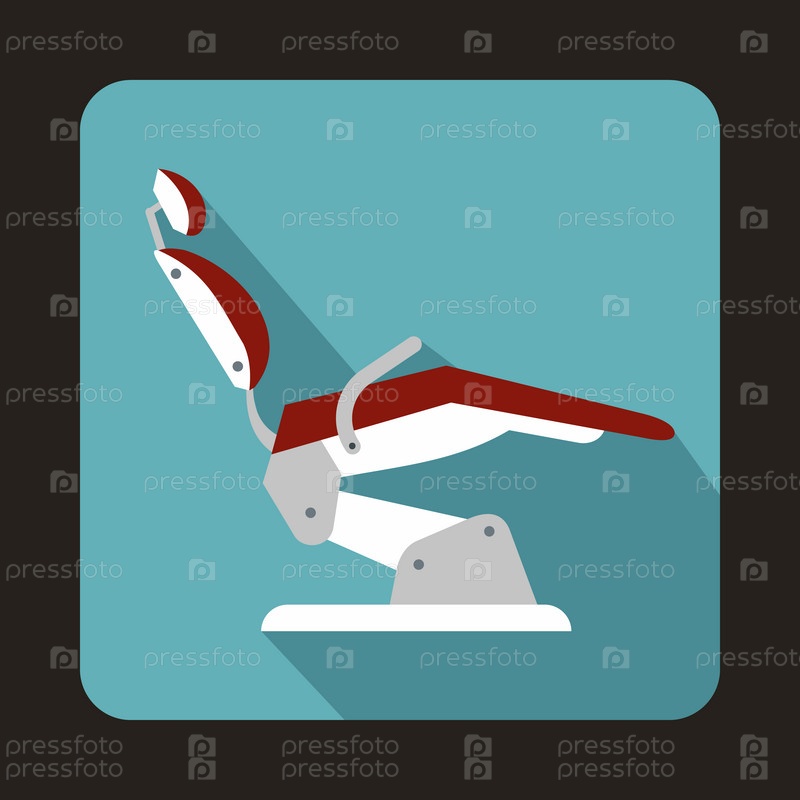 Синяя стоматологическая кресло икона в плоском стиле на синем фоне