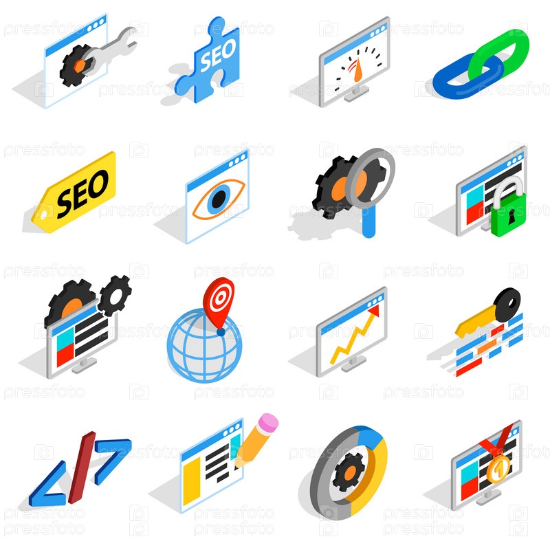 Набор икон SEO, изометрический 3D-стиль