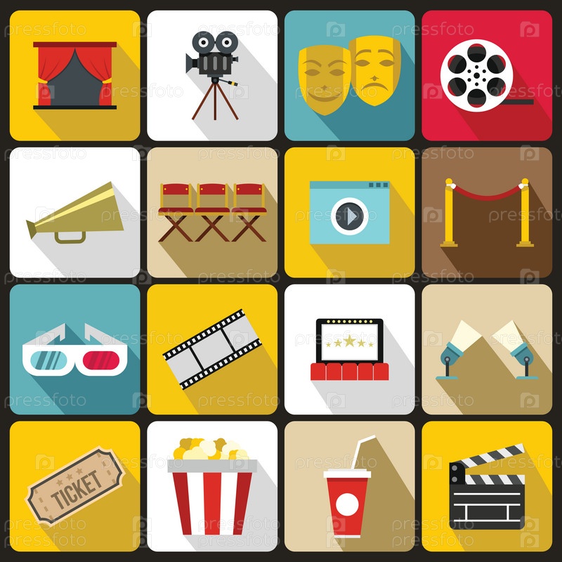 Набор икон кинотеатра, плоский стиль