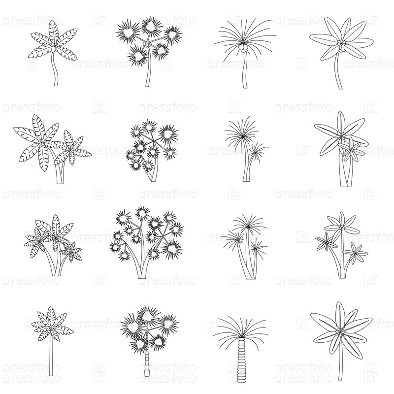 Набор икон пальмовых деревьев, контурный стиль