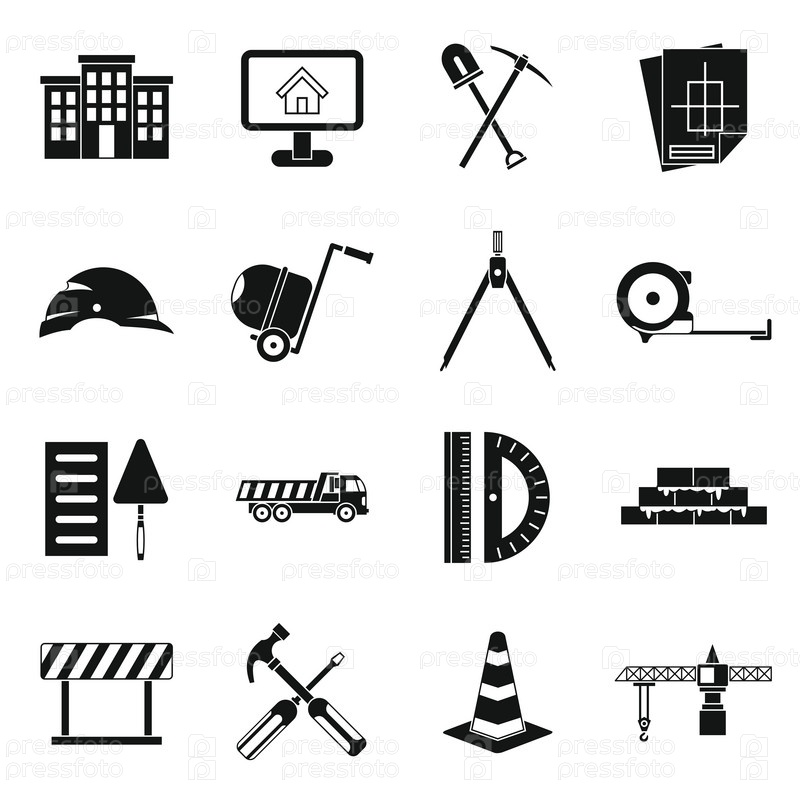 Набор икон строительства, простой стиль