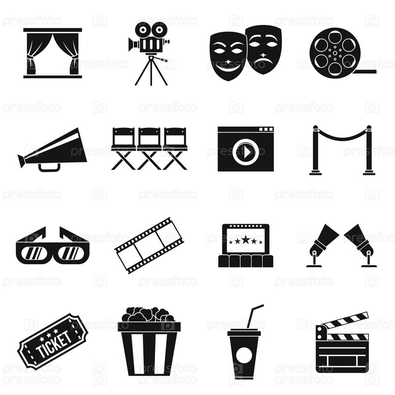 Набор икон кинотеатра, простой стиль