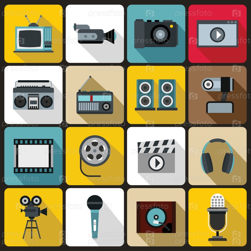 Аудио- и видеокомплект, плоский стиль