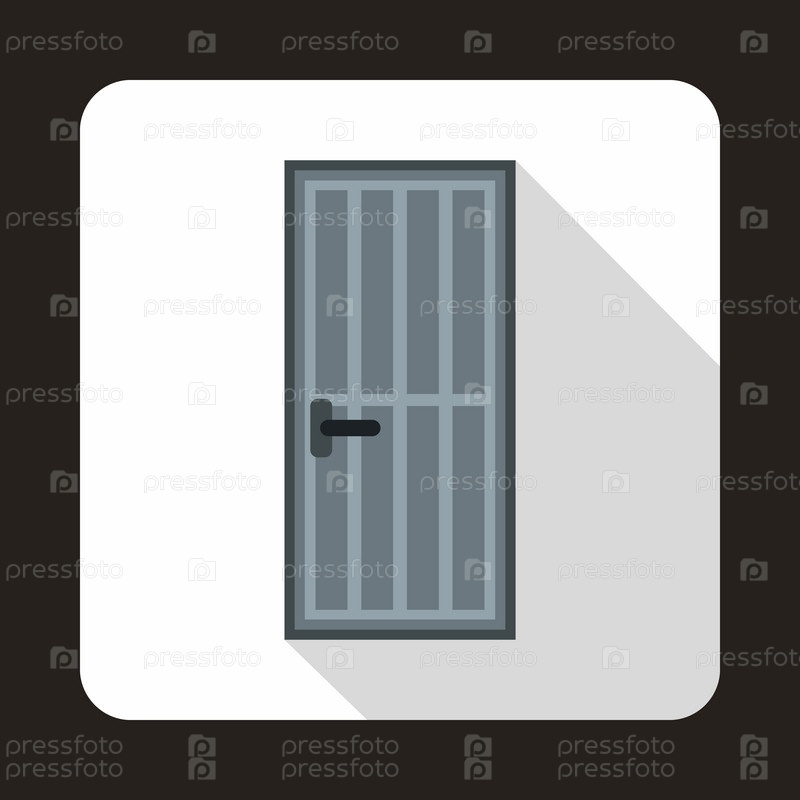 Синяя икона стальной двери в плоском стиле на белом фоне