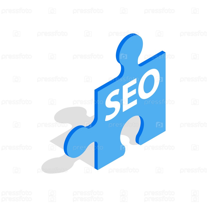 Синий иконка SEO-головоломки в изометрическом 3D стиле на белом фоне