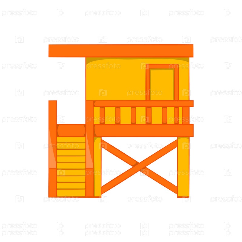 Спасательный стенд на иконе пляжа, в стиле мультфильма