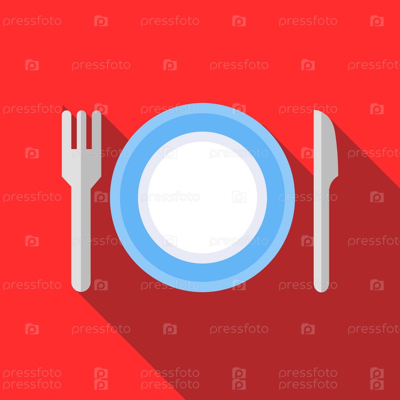 Тарелка с иконой вилки и ножа, плоский стиль
