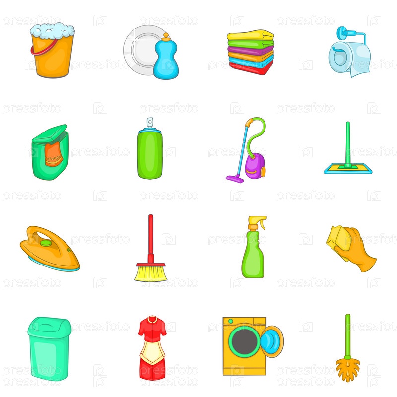 Набор икон бытовых элементов, стиль мультфильм