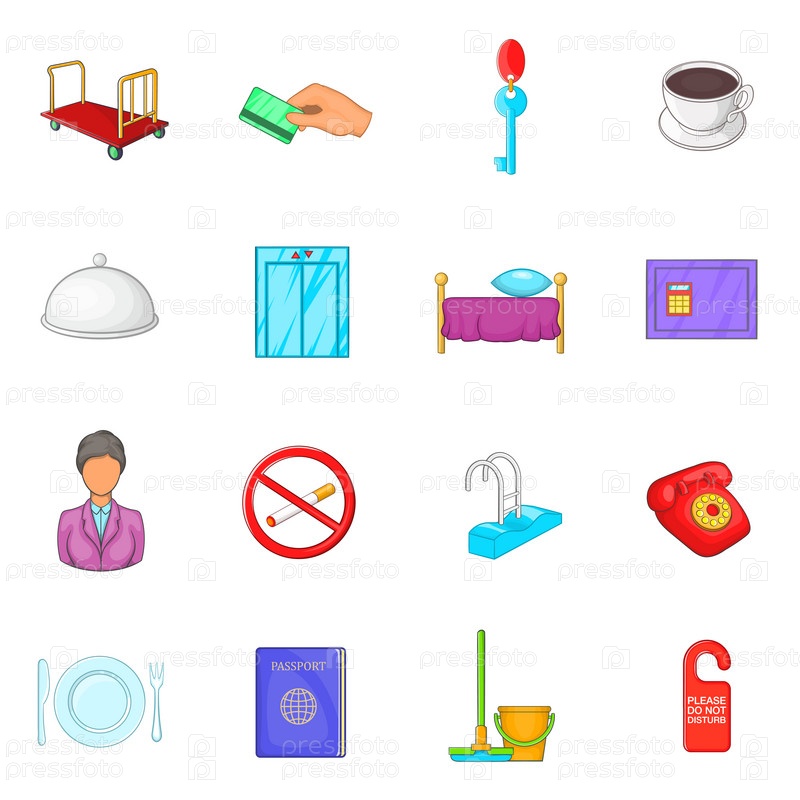 Иконы гостиниц, установленные в стиле мультфильмов
