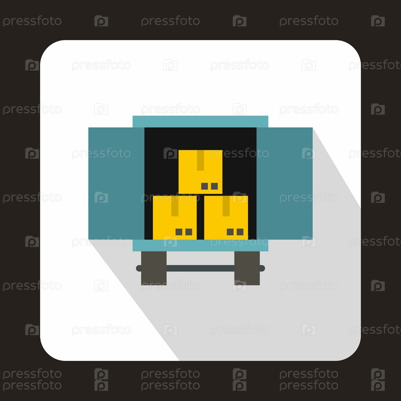 Грузовик, загруженный коробками иконы в плоском стиле на белом фоне