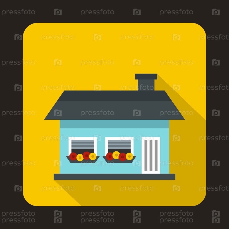 Небольшая синяя коттеджная икона в плоском стиле на желтом фоне