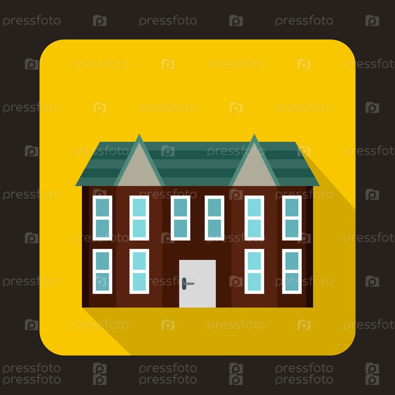 Коричневый двухэтажный дом-икона в плоском стиле на желтом фоне