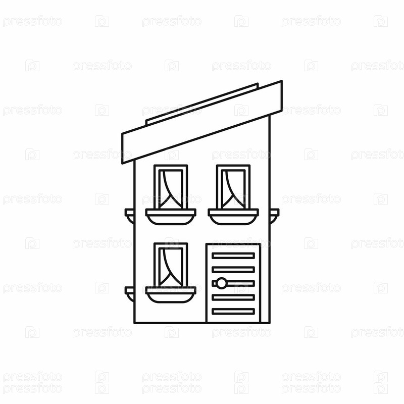 Двухэтажный дом с наклонной иконой крыши в стиле контуры на белом фоне