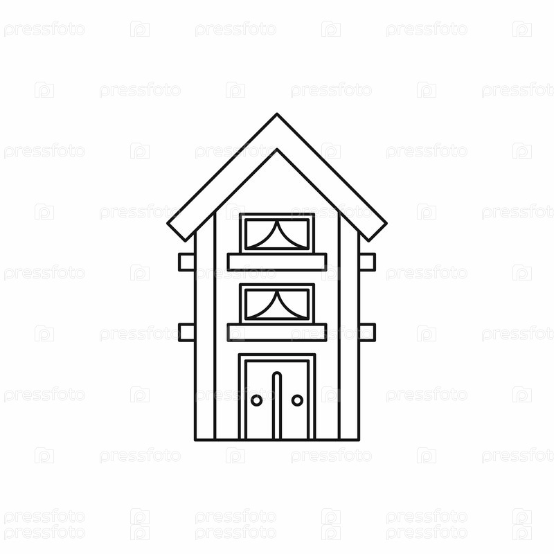Маленькая двухэтажная икона дома в стиле контуры на белом фоне