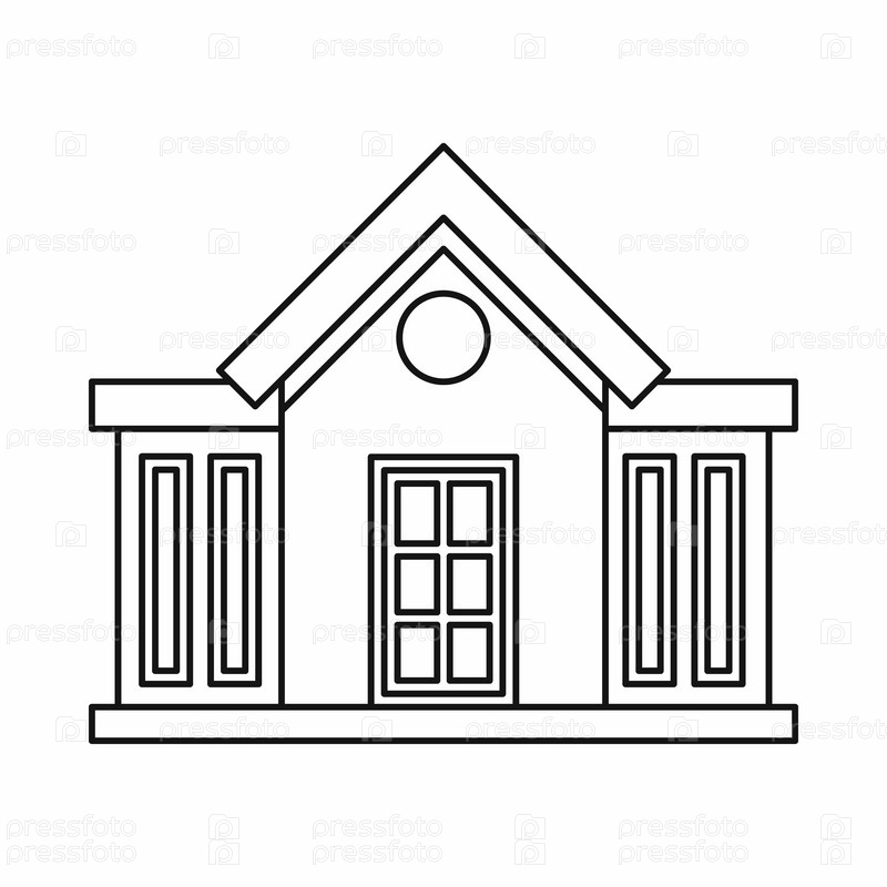 Коттедж с узкими окнами икона, контурный стиль
