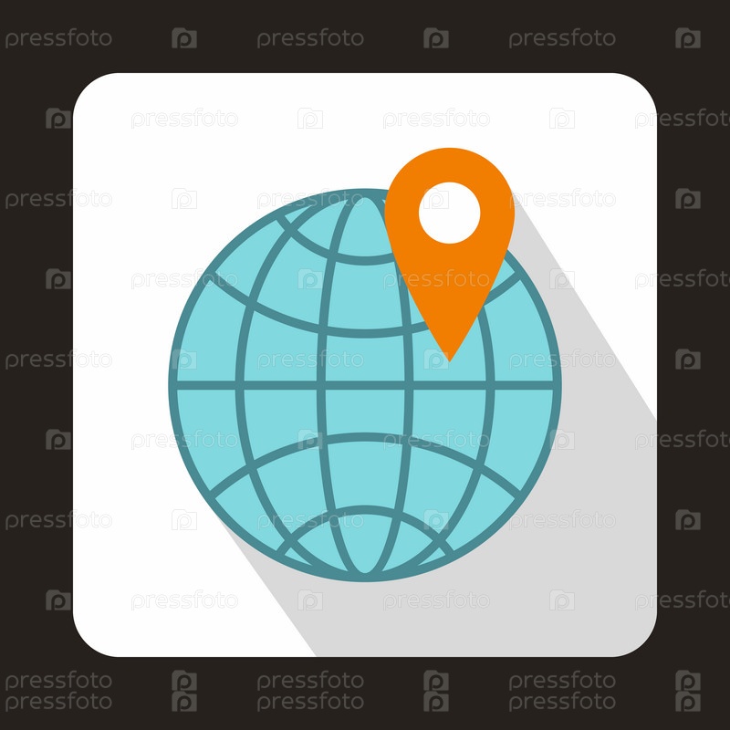 Икона глобуса и указателя на карту в плоском стиле на белом фоне
