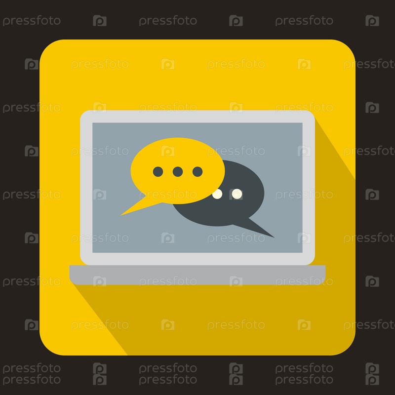 Пузыри речи на иконе ноутбука в плоском стиле на желтом фоне