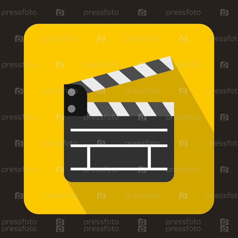 Откройте иконку clapperboard в плоском стиле на желтом фоне