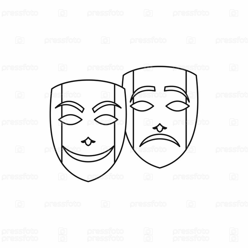 Комедия и трагедия театральные маски икона в стиле контуры на белом фоне