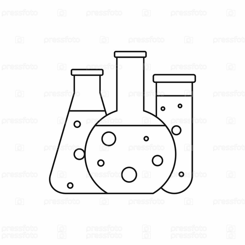 Икона химической лабораторной колбы в стиле контуры на белом фоне