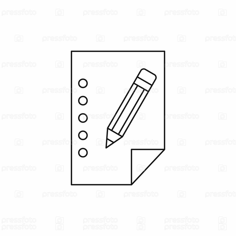 Пустой лист бумаги и икона карандаша в стиле контуры на белом фоне