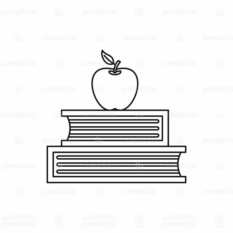 Две книги и значок яблока в стиле контуры на белом фоне