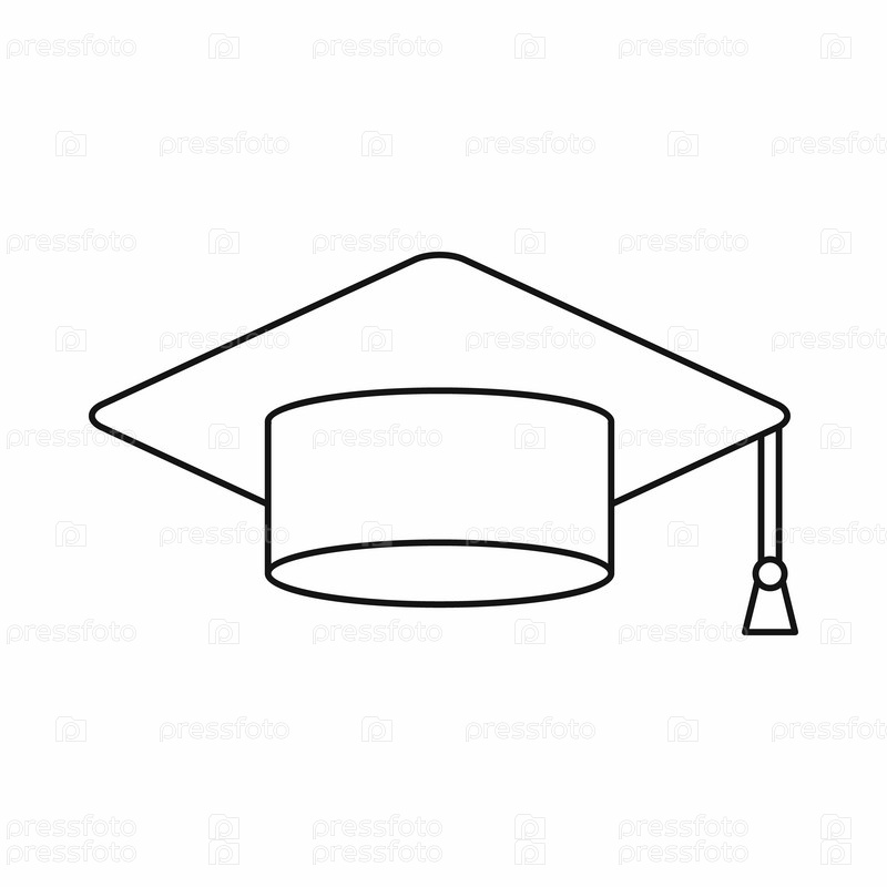 Икона выпускной шляпы в стиле контуры на белом фоне