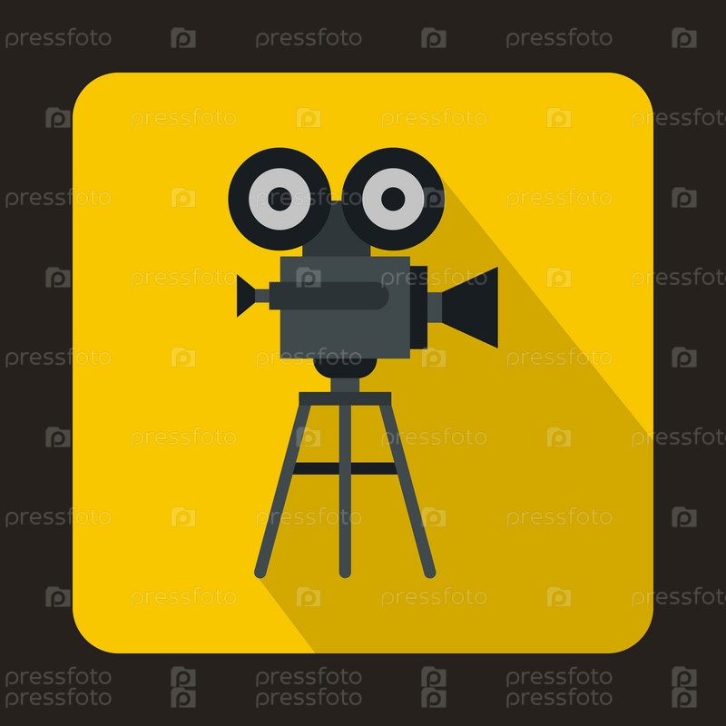 Старая кинокамера с иконой барабана, плоский стиль
