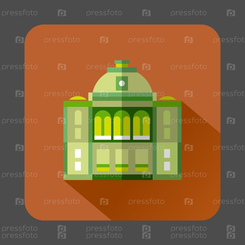 Здание с иконой купола в плоском стиле на русиновом фоне