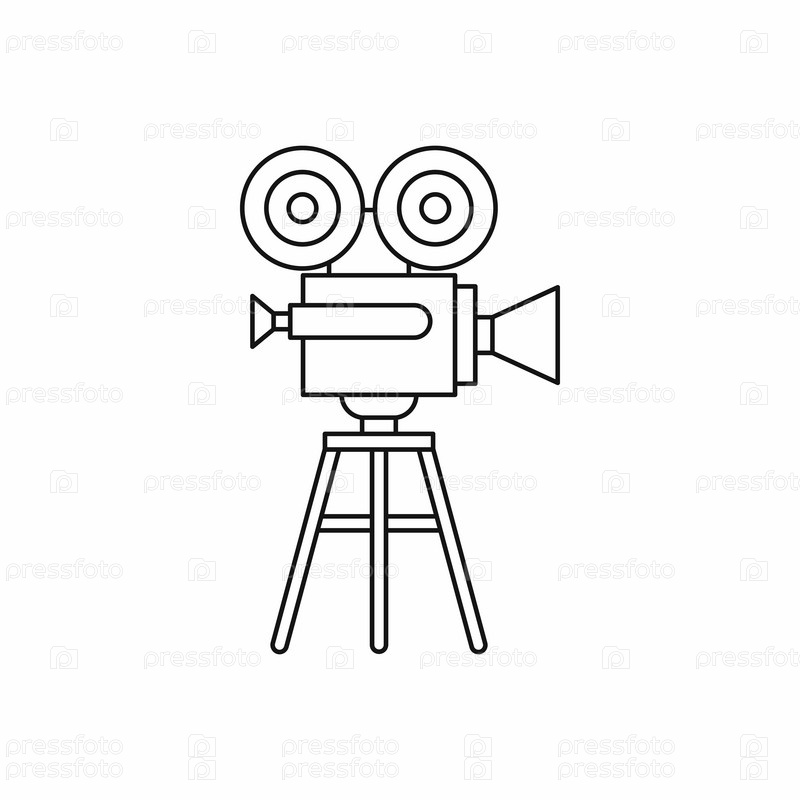 Икона ретро-кинокамеры в стиле контуры на белом фоне