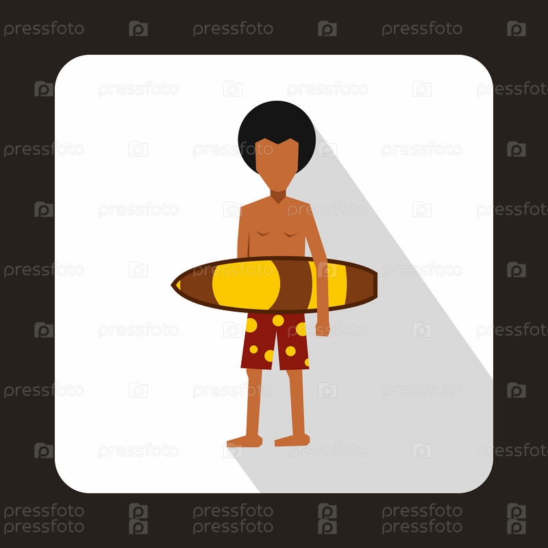 Сёрфер с иконой серфборда, плоский стиль