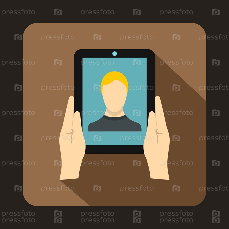 Руки держат планшет с иконой фотографии, плоский стиль
