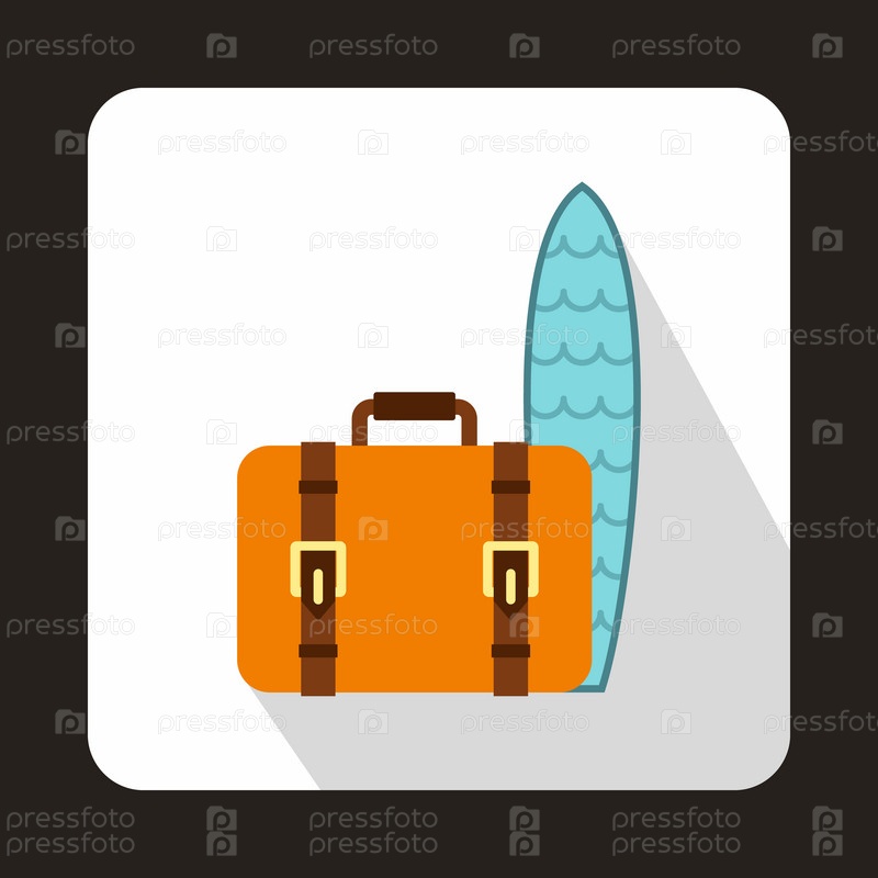 Чемодан и значок доски для серфинга, плоский стиль