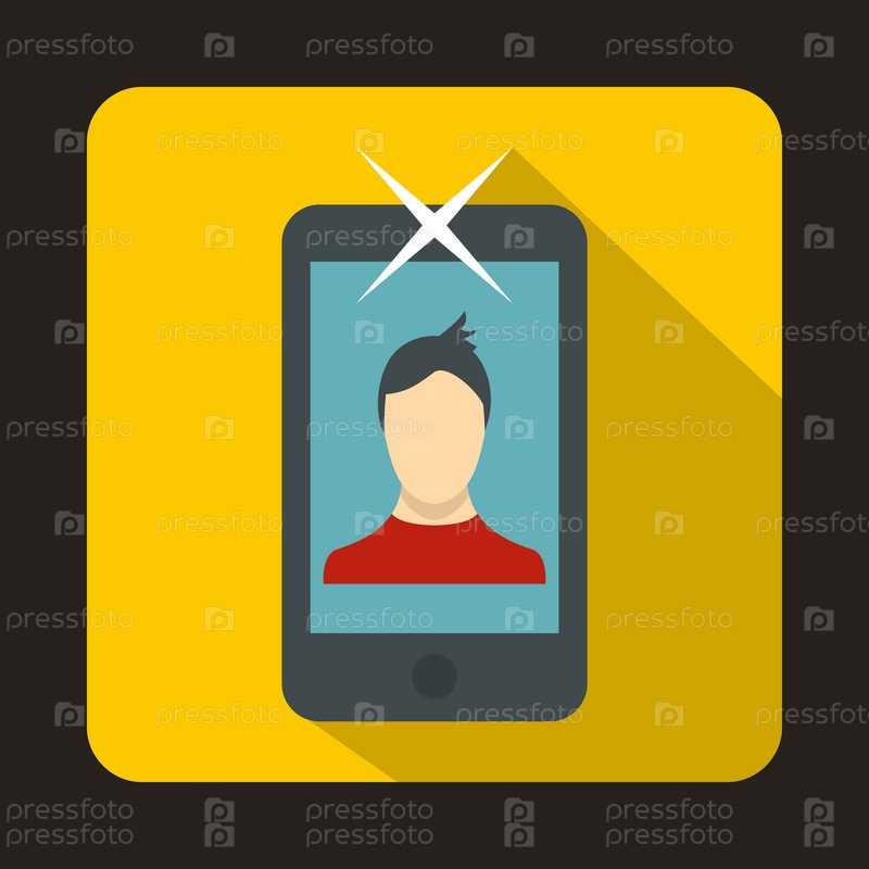 Мобильный телефон с иконой фотографии, плоский стиль