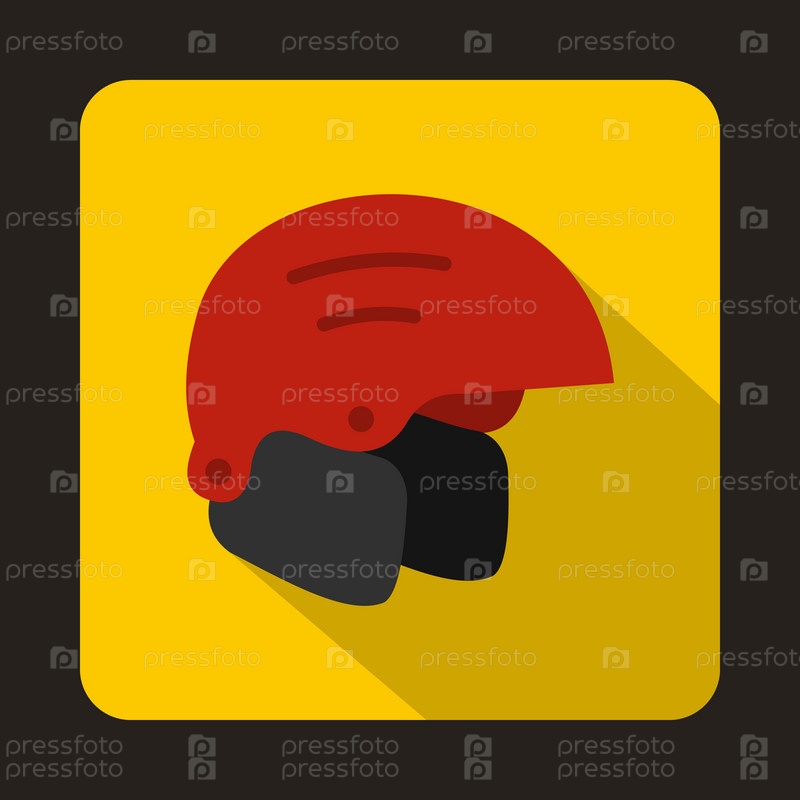 Икона красного лыжного шлема в плоском стиле на желтом фоне