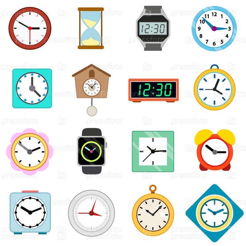 Иконы часов, установленные в изометрическом 3D-стиле